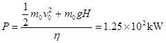 (2)在(1)问中,若水炮每秒出水量m0="60" kg,求水泵的功率P;