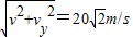 如图所示,从地面上方某点将一物体以 20m/s的初速度沿水平方向抛出,抛出点距离地面的高度h为20m.则物体落地点与抛出点的水平距离x为 m;物体落地时的速度大小为 m/s.(不计空气阻力,取g=10m/s2)