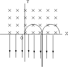 在xoy平面内,x轴的上方有匀强磁场,磁感应强度为B,方向如图所示,x轴的下方有匀强电场,电场强度为E,方向与y轴的正方向相反.今有电量为-q、质量为m的粒子(不计重力),从坐标原点沿y轴的正方向射出,射出以后,第三次到达x轴时,它与O点的距离为L,问: