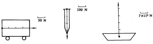 人对车水平向右的推力如图l-1.铁锤对钉子竖直向下的打击力士如图l-2.水对船竖直向上的浮力如图 1-3.