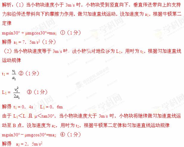 。当传送带沿逆时针方向以v1=3m/s的速度匀速运动时,将小物块无初速地放在A点后,它会运动至B点。(g取10m/s2))