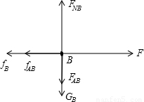 点评:本题关键是对物体正确的受力分析,知道滑动摩擦力与弹力的关系;对B进行受力分析时要注意摩擦力的方向,在对滑动摩擦力的计算时注意弹力大小与重力大小的关系即f=μFN,要讨论FN与重力是否相等,不能在什么情况下都死记f=μG的结论.