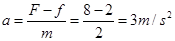 一个静止在水平地面上的物体,质量是2kg,在8N的水平拉力作用下沿水平地面向右运动。物体与地面间的摩擦力是2N。求物体在3s末的速度和3s内发生的位移。