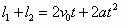 设物体的加速度为a,到达A点的速度为v0,通过AB段和BC段所用的时间为t,则有: 设O与A的距离为l,则有: 联立式得: |