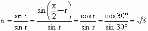 一束光由真空入射到平面玻璃上,当其折射角为30°时,反射光恰好产生完全偏振.因此,可以推断出玻璃的折射率为
