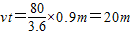 x1=vt=20×£¨0.9+0.1£©m=20 m