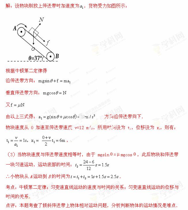 (2013江苏名校质检)传送带与水平面夹角为37°,皮带以12 m/s的速率沿顺时针方向转动,如图所示。今在传送带上端A处无初速度地放上一个质量为m的小物块,它与传送带间的动摩擦因数为0.75,若传送带A到B的长度为24 m,g取10 m/s2,则小物块从A运动到B的时间为多少?