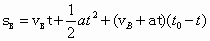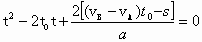 解:设A车的速度为vA,B车加速行驶时间为t,两车在t0时相遇.则有 式中,t0=12 s,sA、sB分别为 A、B两车相遇前行驶的路程.依题意有 式中s=84 m,由①②③式得 代入数据t2-24t+108=0⑤ 式中t的单位为s.解得 t1=6 s,t2=18 s⑥ t2=18 s不合题意,舍去.因此,B车加速行驶的时间为6 s |