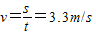 水平速度即为风速 v=3.3m/s