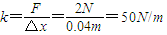 (2)弹簧处于原长时,弹力为零,故原长为4cm;弹簧弹力为2N时,弹簧的长度为8cm,伸长量为4cm;根据胡克定律F=k△x,有: