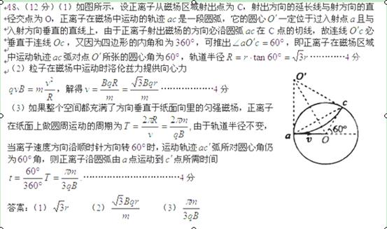 的圆形区域内的匀强磁场,磁感应强度为B,方向垂直纸面向里。电荷量为