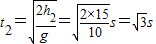 【答案】分析:直杆通过隧道时间为直杆的下端到达隧道的上沿到直杆的上端离开隧道的下沿所用的时间.分别求出直杆自由释放到直杆的下端到达隧道上沿的时间和直杆上端离开隧道的下沿的时间,两时间之差即为通过隧道的时间.