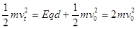 坐标原点O处有一点状的放射源,它向xoy平面内的x轴上方各个方向发射α粒子,α粒子的速度大小都是v0,在0<y<d的区域内分布有指向y轴正方向的匀强电场,场强大小为