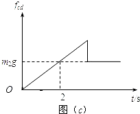 (3)cd棒的运动情况是:cd棒先做加速度逐渐减小的加速运动,当cd棒所受重力与滑动摩擦力相等时,速度达到最大;后做加速度逐渐增大的减速运动,最后停止运动.cd棒达到最大速度所需的时间t0是2s.在图(c)中定性画出cd棒所受摩擦力fcd随时间变化的图象如图所示.