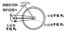 (1)大齿轮半径R1、小齿轮半径R2、后轮半径R3 (2) ![]()
