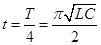 的时间,电流又达到最大,但电流方向在LC回路中是顺时针方向,认为在线圈中是向上的.选项C正确.两板间电压为零,选项D错误.