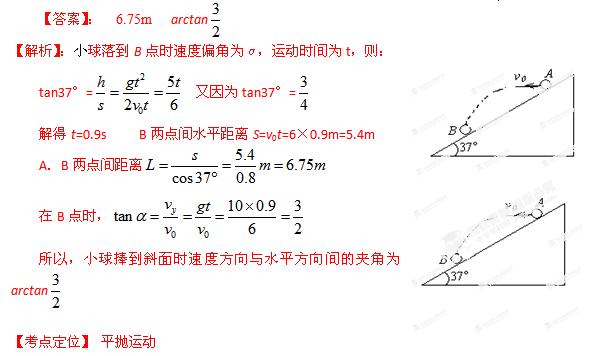 两点间距离和小球在空中飞行时间。(g=10m/s)