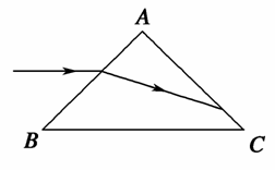 (2006·东北联考)如图所示,一个三棱镜的折射率,其截面为直角三棱镜,∠A=30°,∠C=90°.一条单色光线从空气垂直AB边入射,该光线的出射光线有几条?