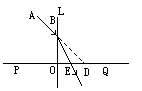 L为透镜,PQ是透镜的主轴,O为透镜光心.AB是从某一点光源发出的一条光线,经透镜折射后出射光线为BC,BC交PQ于E点,AB的延长线交PQ于D点,已知 OD=3OE=30㎝,求该透镜的焦距多大?