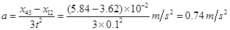 下图为接在50Hz低压交流电源上的打点计时器,在纸带做匀加速直线运动时打出的一条纸带,图中所示的是每打5个点所取的记数点,但第3个记数点没有画出。由图数据可求得: