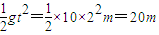 解答:解:根据题意可知,自由落体运动,则有下落的速度:v=gt=10×2m/s=20m/s;