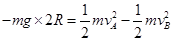 ;小球由A到B的过程中,机械能守恒-mg×2R=