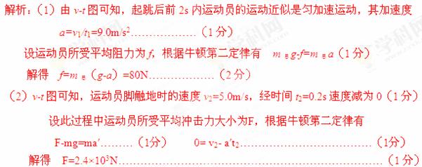 (2)运动员从脚触地到最后速度减为0的过程中,若不计伞的质量及此过程中的空气阻力,则运动员所需承受地面的平均冲击力多大。