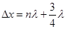 沿x轴向右传播时,传播的距离为v=(20n+5) m/s (n=0、1、2……)