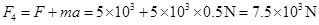F2=F’-ma=5×103+5×103×2N=1.5×104N