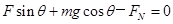 如图所示,倾角为θ的固定斜面上有一质量为m的物体,物体与斜面的动摩擦因数为μ,当受一水平推力F作用时,求:为使物体匀速上滑则F应为多大?![]()