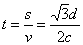 等腰直角三角形,放在真空中,如图所示,AB=AC=d,一束单色光以60°的入射角从AB面中点射入,当它从AC侧面射出时,出射光线偏离入射光线的偏向角为30°,已知单色光在真空中的光速为c,求此单色光通过三棱镜的时间是多少?(入射点位置足够高)![]()