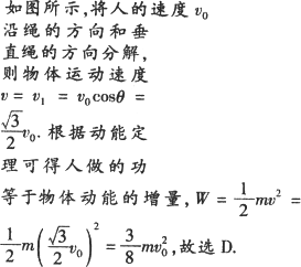 如图所示,质量为m的物体静止放在光滑的平台上,系在物体上的绳子跨过光滑的定滑轮,由人拉着在地面上以速度v0向右匀速运动.设人由平台的边缘开始向右行至绳与水平方向或30.角处,在此过程中人所做的功为