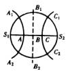 如图所示,在同一均匀介质中有S1、S2两个波源,这两个波源的频率、振动方向均相同,且振动的步调完全一致,S1、S2之间相距两个波长,B点为S1、S2连线的中点;今以B点为圆心,以![]()