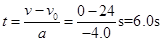 近年来,我国高速公路网发展迅速。为了确保安全,高速公路上行驶的汽车之间应保持必要的距离,已知某高速公路的最高限速v=24 m/s。某司机驾车在该高速公路上以限定的最高速度行驶,突然前方约90 m处有一车辆因故已停挡住去路,司机从发现后便操作紧急刹车,到汽车开始匀减速所经历的时间(即反应时间)为t0=0.50 s(注:在反应时间内汽车做匀速运动),刹车时汽车的加速度大小为4.0 m/s2(计算结果数值保留两位有效数字),问