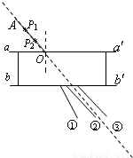 D¡¢Èô±£³ÖOµã²»¶¯£¬Ôö´óÈëÉä½Ç£¬ÔÚbb¡ä²àµ÷Õû¹Û²ìÊÓÏߣ¬¿´²»ÇåP1ºÍP2µÄÏñ£¬·´Éä¹âÔöÇ¿£¬ÕÛÉä¹âÏß¼õÈõ£¬ÔÚbb¡ä²àµ÷Õû¹Û²ìÊÓÏߣ¬»á¿´²»ÇåP1ºÍP2µÄÏñ£®¸ù¾Ý¹â·¿ÉÄæÐÔÔÀíµÃÖª£¬¹âÏß²»¿ÉÄÜÔÚbb¡ä½çÃæ·¢ÉúÈ«·´É䣮¹ÊD´íÎó£®
