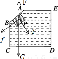 若浮力大于重力,则物体一定会受AB对P的弹力,由于弹力垂直于接触面向下,如图所示,物体只有受到向下的摩擦力才能受力平衡,故一定受四个力;