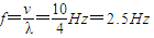 解答:解:由图,A=0.5m,λ=4m