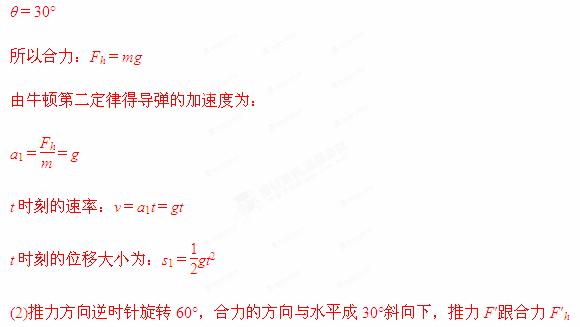 ˮƽ·½Ïò³É¦È£½30¡ã½ÇµÄÖ±ÏßбÏòÓÒÉÏ·½ÔȼÓËÙ·ÉÐУ®¾¹ýʱ¼ätºó£¬Ò£¿Øµ¼µ¯Éϵķ¢¶¯»ú£¬Ê¹ÍÆÁ¦µÄ·½ÏòÄæÊ±ÕëÐýת60¡ã£¬µ¼µ¯ÒÀÈ»¿ÉÒÔÑØÔ·½ÏòÔȼõËÙÖ±Ïß·ÉÐУ®(²»¼Æ¿ÕÆø×èÁ¦ºÍÅçÆø¹ý³ÌÖе¼µ¯ÖÊÁ¿µÄ±ä»¯)£®Çó£º