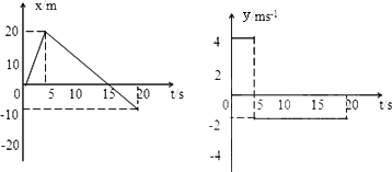 解:在前5 s内小车运动的位移 在后15 s内小车运动的位移 以小车的出发点作为坐标原点,在这20 s内小车的x-t图象和v-t图象如图