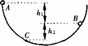 一滑块从图所示的弧形轨道上的A点,由静止开始滑行,由于轨道不光滑,它仅能滑到B点,而返回后又仅能滑动到C点,若A、B两点的高度差为h1,B、C两点的高度差为h2,必有 ( )