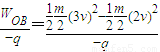 空间存在匀强电场,有一电荷量为q(q为正)、质量为m的粒子从O点以速率vo射入电场,运动到A点时速率为2vo.现有另一电荷量为-q、质量为A.在O、A、B三点中,O点电势最高