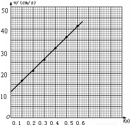 (2)有图象可知图象与纵坐标的交点为:11.6,故可得小车在t=0时刻的速度约为11.6cm/s.