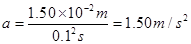 如图所示,是某同学在“研究匀变速直线运动”的实验中打出的一条纸带,图中每相邻两个计数点之间还有四个点没有画出。打点计时器的频率是50Hz。测得各相邻计数点之间距离分别是 AB=1.50cm,BC=3.00cm,CD=4.50cm,DE=6.00cm。则,加速度a = m/s2,打C点时的速度vc = m/s. (计算结果保留三位有效数字).![]()