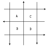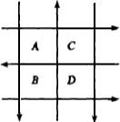 在同一个平面内有六根彼此绝缘的通电导线,其中电流大小相同,方向如图所示.A、B、C、D四个区域均为面积相同的正方形,其中指向纸外的磁场最强的区域是________区.![]()