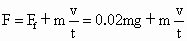 汽车满载时总质量为5t,从静止开始做匀加速直线运动,经5s速度达到36km/h,所受阻力为重力的0.02倍,求汽车的牵引力.