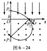 如图所示,在y>0的空间中存在匀强电场,场强沿y轴负方向;在y<0的空间中,存在匀强磁场,磁场方向垂直xy平面(纸面)向外。一电量为q、质量为m的带正电的运动粒子,经过y轴上y=h处的点P1时速率为v0,方向沿x轴正方向;然后,经过x轴上x=2h处的 P2点进入磁场,并经过y轴上y=