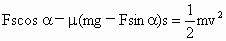 用拉力F使一个质量为m的木箱由静止开始在水平冰道上移动了s,拉力F跟木箱前进的方向的夹角为α,如图所示,木箱与冰道间的动摩擦