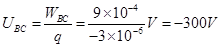 有一个电量q=-3×10-6C的负点电荷,从某电场中的A点移动到B点,电荷克服电场力做了6×10-4J的功,该电荷从B点移至C点,电场力对电荷做了9×10-4J的功,设B点电势为零,求: