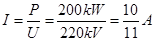 ,理想变压器两端的功率相等,所以输电电流为![]()