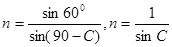 如图所示为一块用某种透明材料制成的柱形棱镜的水平截面图,CD为圆周,圆心为O,光线从AB面入射,入射角为60°,它射入棱镜后射在BC面上的O点并恰好不从BC面射出.则该棱镜的折射率n为( )